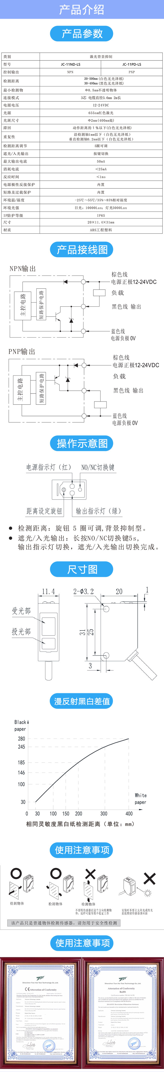 • 檢測距離 : 20-500mm(白紙)/30-400mm(黑紙)